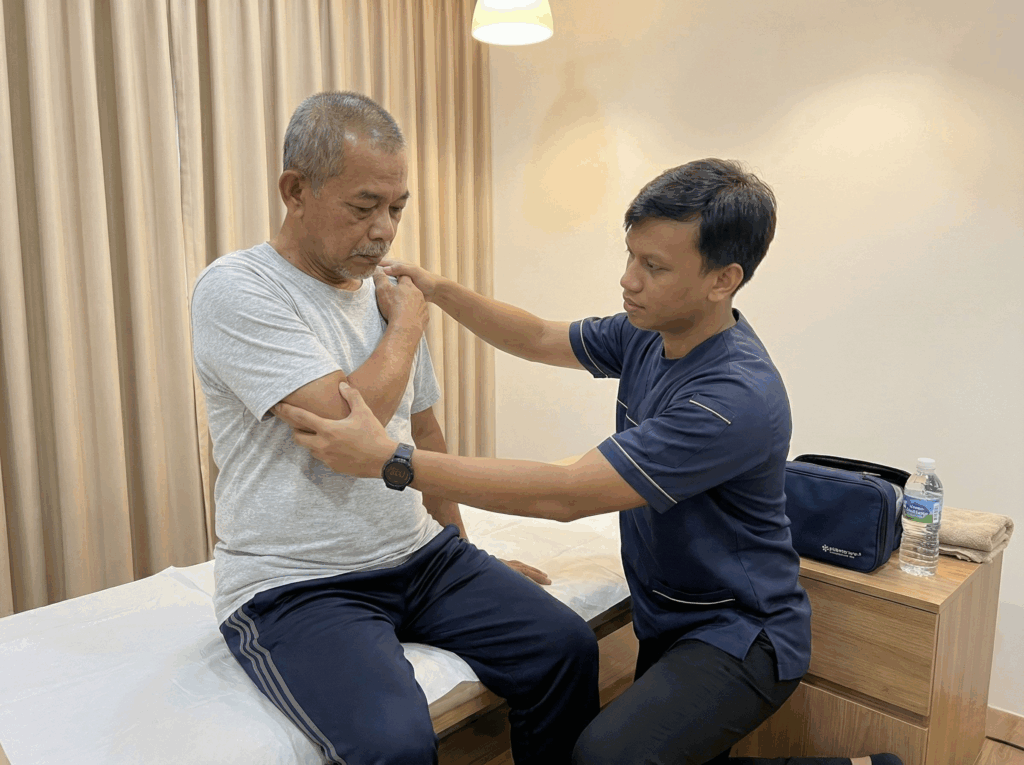 • Fisioterapi: Sebelum sebarang rawatan, Fisioterapis di Ai Physiotherapy akan melakukan penilaian klinikal penuh. Ini termasuk memeriksa julat pergerakan sendi (Range of Motion), kekuatan otot, postur badan, dan ujian khas ortopedik untuk mengetahui struktur mana yang cedera—sama ada otot, ligamen, saraf, atau cakera tulang belakang.